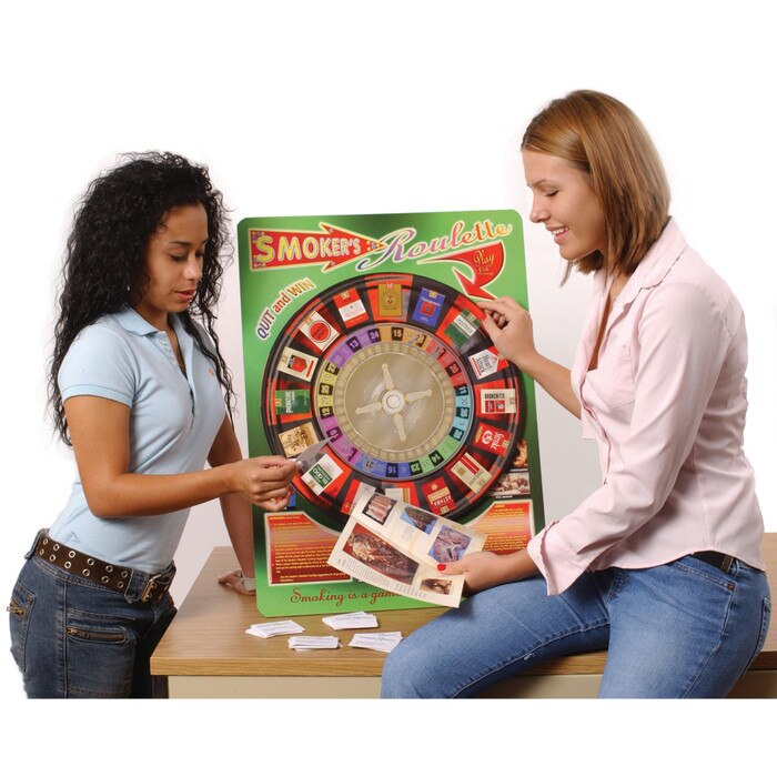 As this fun roulette wheel reveals, smoking is a high-risk activity, causing a multitude of negative health consequences. The question is: Which ones will you get: lung cancer, heart attack, stroke, bronchitis, erectile dysfunction, or something else? Perfect to inspire young people not to start smoking or to encourage smoking cessation. Comes with 60 game cards and presentation guide. 52 cm x 71 cm.